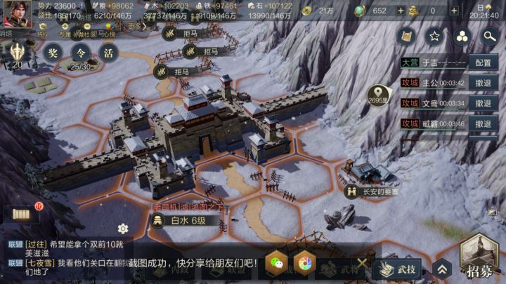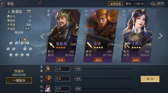 初级技巧:1. 初始升级的时候用一个武将站在中前位置单刷一级地,能够获得100经验直接升4级。2. 前期除了开局优先点主城和裨将所外,其余建筑都跟着任务走。3. 1-4级资源地武力主将在右边,法系在中路,五级资源地武力主将在左路,法系在中路。4. 开局的天下事件是流民(300个预备兵),一定要做,包括后面的押粮(矿石2.4W一次)一次不能少。5. 开第一块石头四级资源地后让2队或者3队去