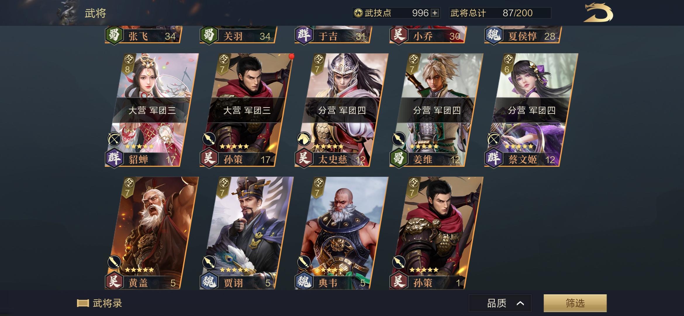 主将技能捭阖之计(主动技能)S对范围内的敌军造成120%智力伤害,并降低其20%的智力,持续20秒。这个技能和于吉的主将技能差不多,但是降智力的能力比于吉更厉害,感觉这个人物可以替代于吉。自带技能王佐之才(指挥技能)S前30秒,使主将智力、神算提高10%,30秒后,使副将受到伤害降低10%。这个技能不仅能够提升主将的智力和神算,还能降低副将受到的伤害,是一个适合谋略型武将队伍的人物。兑