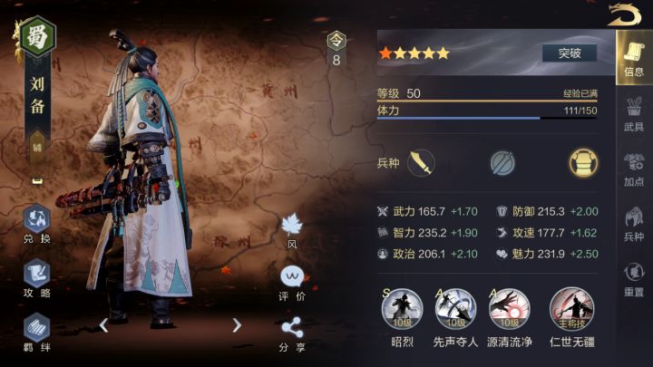 鸿图之下阵容搭配(1)在s1中抽到武将以及技能齐全,决定组一队连击流大蜀(s1,s2均可穿10)分享一波。加点和兵种赵云:攻速,狂斧兵。刘备:智力,藤甲兵。张飞:武力,狂斧兵阵容搭配:刘备(主将)将令:8主将技能:仁世无疆自带技能:昭烈一号技能:先声夺人二号技能:源清流净赵云(副将)将令:8自带技能:龙胆一号技能:怒目退敌二号技能:舍我其谁张飞(副将)将令:8