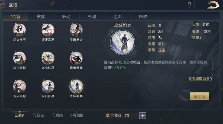 一、攻城技能首先每支队伍的武将尽可能携带攻城技能,尽可能点满(别这么小家子气,咱们已经是小联盟更需要对自己好一点,武将点可以使用钱币召唤低阶武将分解大量获得二、攻城兵种首先前期只有三个兵种有专属的攻城技能(步兵、弓兵、枪兵),排除其他兵种,所以排除最帅气的骑兵。而在三个兵种中推荐的优先级:步兵>枪兵>弓兵,推荐多带步兵(两步一弓是顶好的)。三、武将选择武将选择就比较简单粗暴了,要那种越强