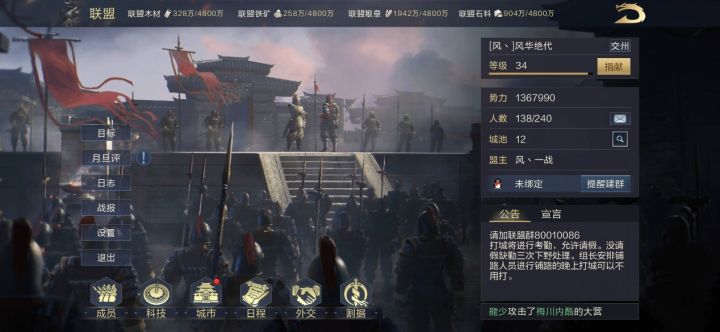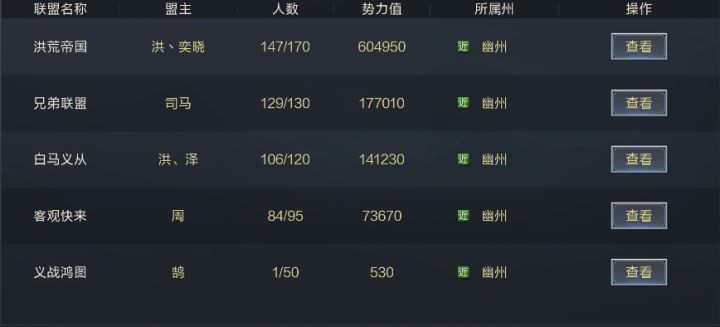 这个游戏其实是拼人气的游戏,联盟人数多真的可以为所欲为,幽州联盟一般,而我的盟只是第二的,距离第一相差甚远,但是他们第三天打三级城,我们也能打,只要兄弟齐心,其利真的可以断金,好现在说一下联盟的发展,第一天开服很重要,我就是抢第一盟抢慢了,结果人大部分都是进第一盟,所以你在下面就没法,况且当时我是在第四的位置,一个4个人,还有一个我的小号,很尴尬,所以我感觉建联盟的时间很关键,怎么快速升级到5