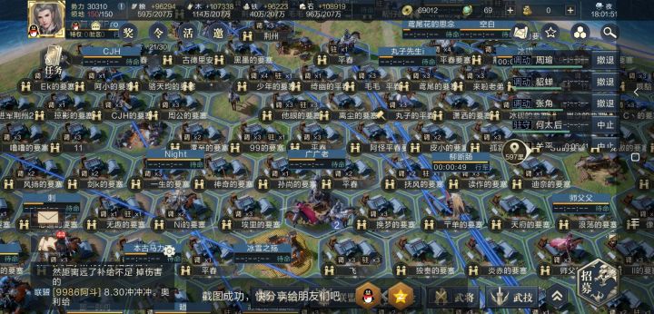 手Q82区诸君心中鸿图梦,让吾等汇聚于此(鸿图之下)!开荒、种地、攻城、好不快哉!然,天下以分久已。战火一触即发,诸君以不能独善其身。故而联盟成立,抱团取暖。并以扬州“名人堂”,益州“霸气雄图”为最!豫、荆两州关口一开,两盟以迅雷不及掩耳盗铃之势,进入豫,荆两州!天下以乱,战火纷飞,“名人堂”稍作修整,一声令下,挥师北上,陈兵于平春渡口外。欲破平春,入驻荆州。然“霸气雄图”不甘示弱,拒马,