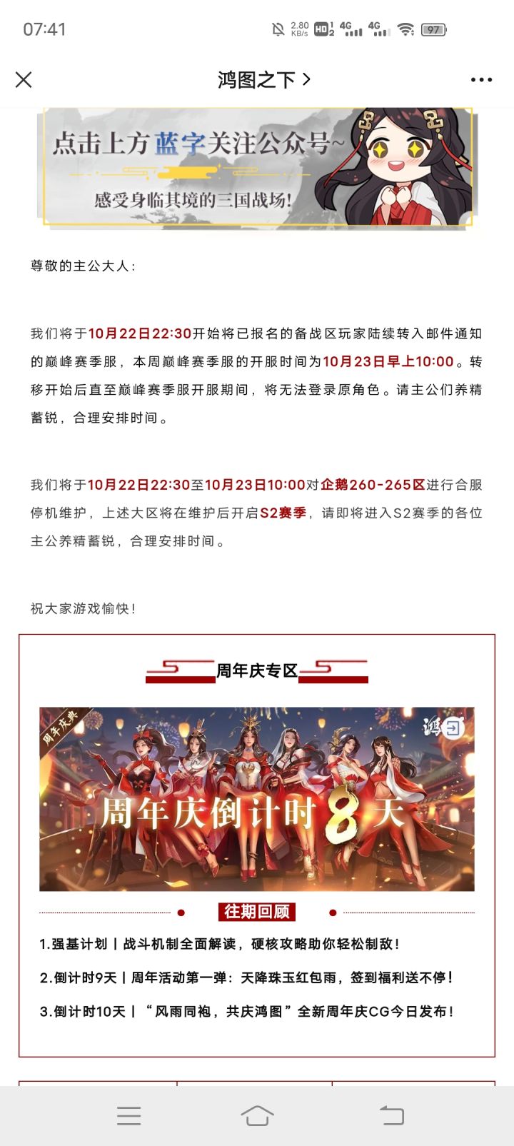 合服公告丨《鸿图之下》11月26日停机维护预告