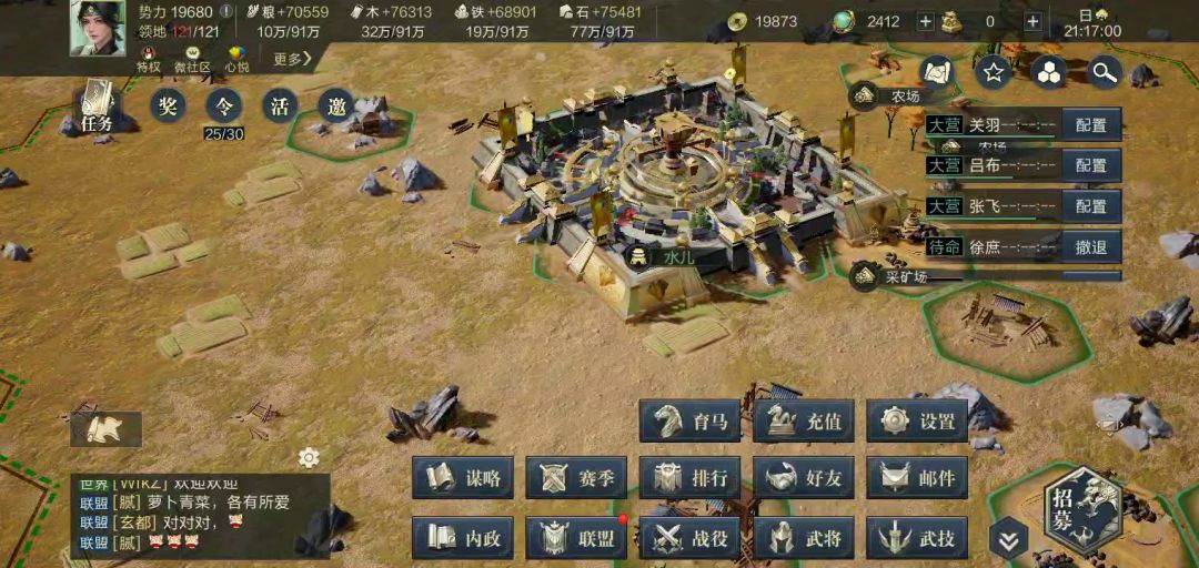 首先上图,手q16区,充了6元首充玩了12个小时,觉得实在有些槽不得不吐。1.盟友地块的颜色和自己地块的颜色相差不大,看着很别扭。在地块级数的视野下,我建议将盟友的视野颜色和自己的视野颜色区别开来。你们应该都有邻居和自己同属一个盟的经历,双方都建了哨塔,结果那一大块区域显示的都是绿色,互相融合不好区分。盟友理所当然借你的地打资源,问就是“都是绿色的啊”“不就几块地吗?”“这么小气,算了算了