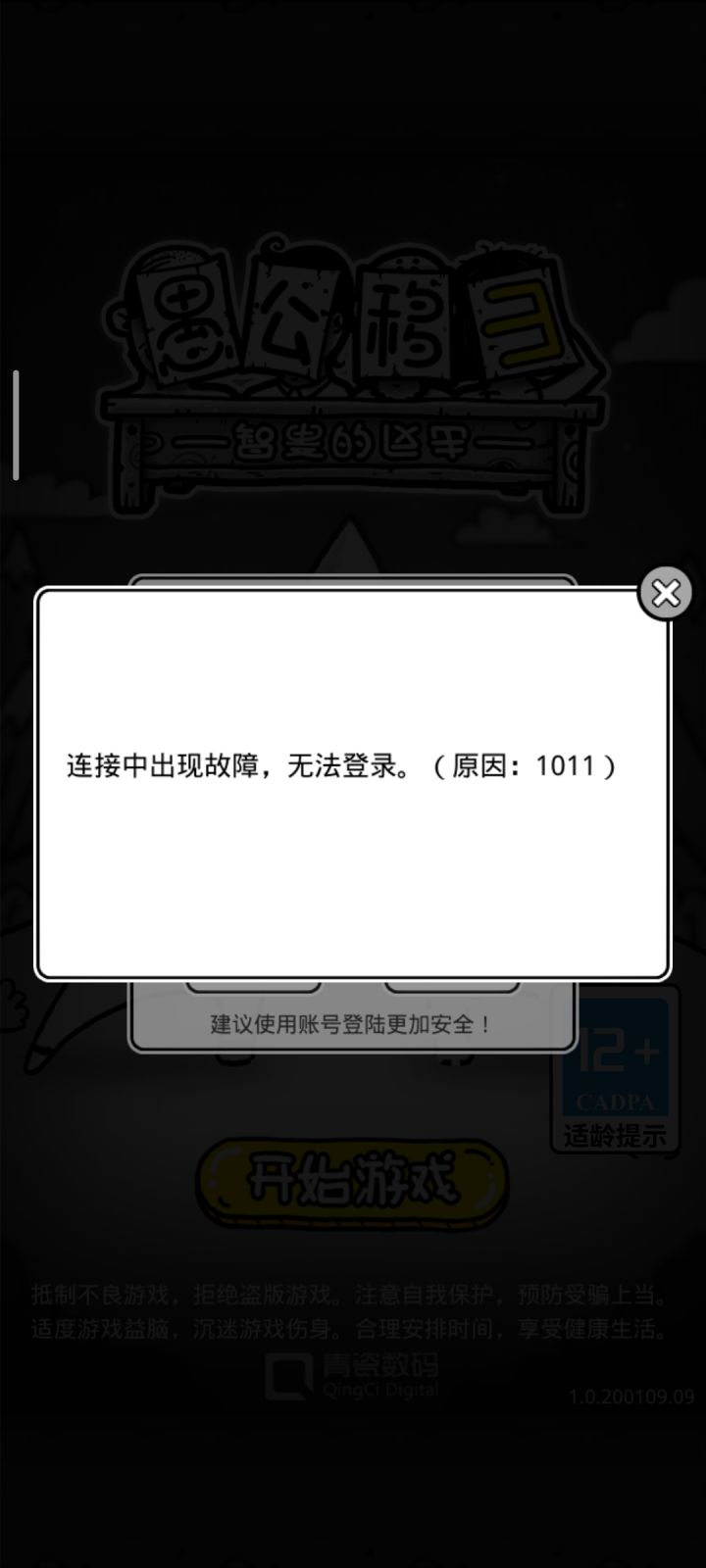 登陆的时候一直报1011错误,我退的时候是三国第一关