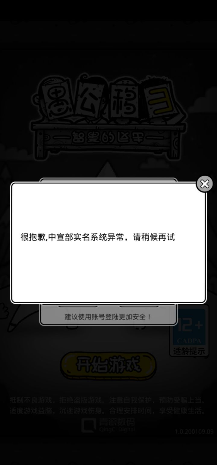 实名认证就显示这个,根本进不去游戏啊😓