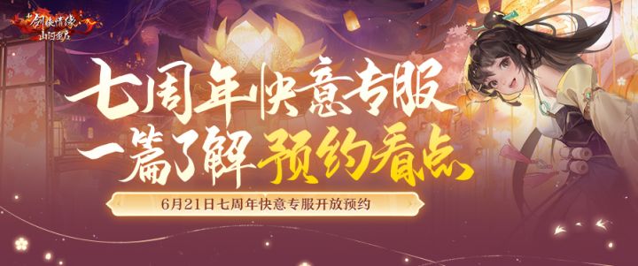 佳柒如梦,快意江湖!七周年庆典月第二周狂欢今日来袭,更精彩的活动和丰厚福利来了!七周年快意专服将在6月21日开放预约,今天小师妹给少侠们详细讲解一下预约流程/奖励/规则,帮助少侠们在预约开启时直接快人一步! 组队抱团预约,齐聚七周年快意专服!七载江湖,全新出发!七周年快意专服将在本周三(6月21日)开放预约,七周年庆特色专属服务器主打一个“丝滑体验”,让少侠们前期体验更加丝滑流畅,感受全新