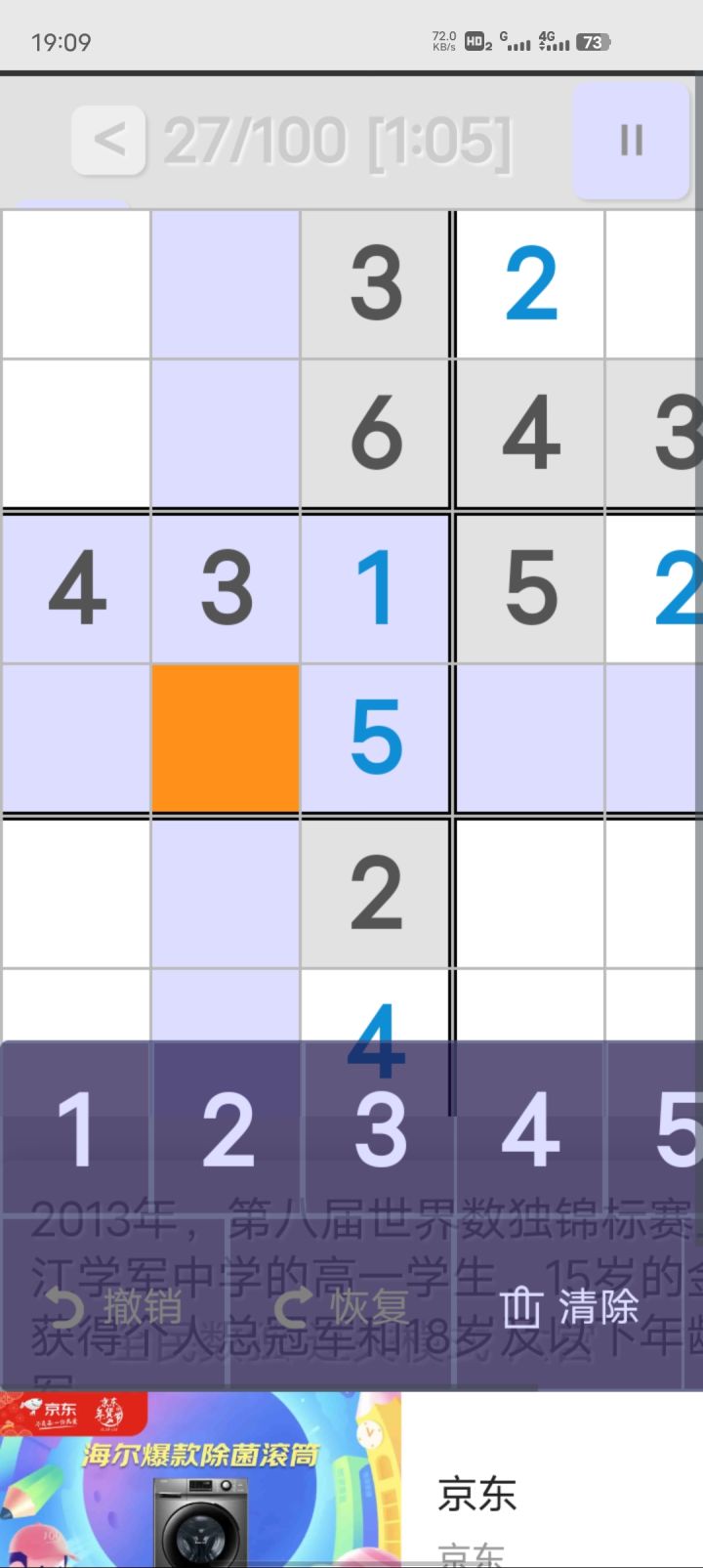 个人感觉数独游戏很有意思,没有过多的广告,比较推荐,继续努力