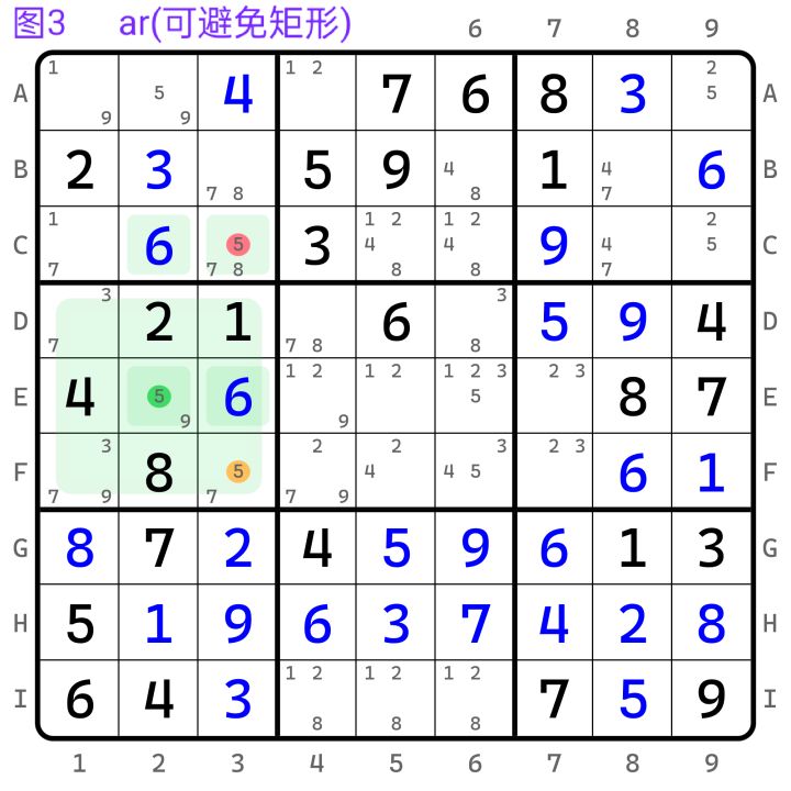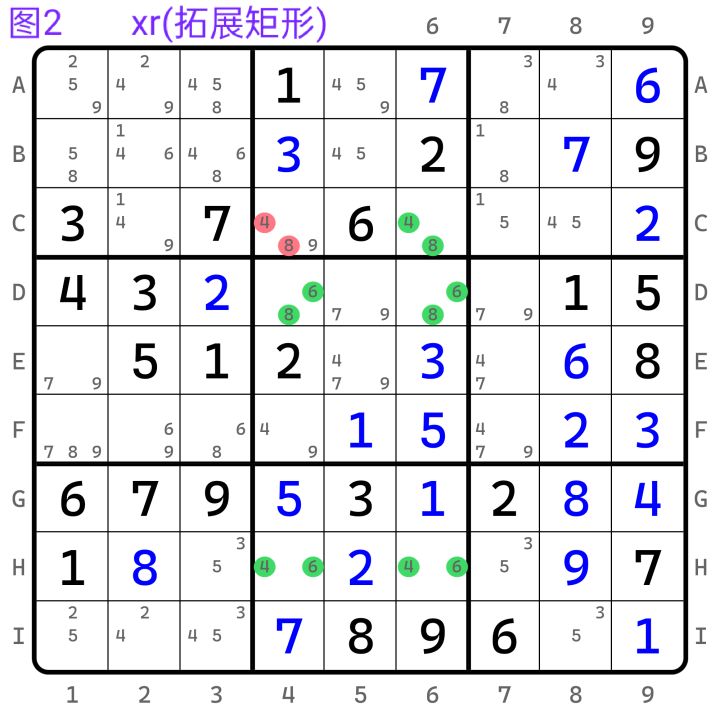 在进阶篇中已经介绍了不少技巧,但划分起来还是属于致命结构跟链两大块,难度更高的题,基本都是使用强弱关系/致命结构来解题,涉及到的技巧大多都需要更多文字跟图例或者视频来学习(动态链/强制链/sdc(融合待定数组)/守护者/毛刺、毛边/探长致命等等),一方面是笔者也还在学习还没吃透,所以在高难篇中,只会介绍一种链的技巧:环(连续环),以及致命结构的其他扩展:xr(拓展矩形)/ar(可规避矩形)/ul(