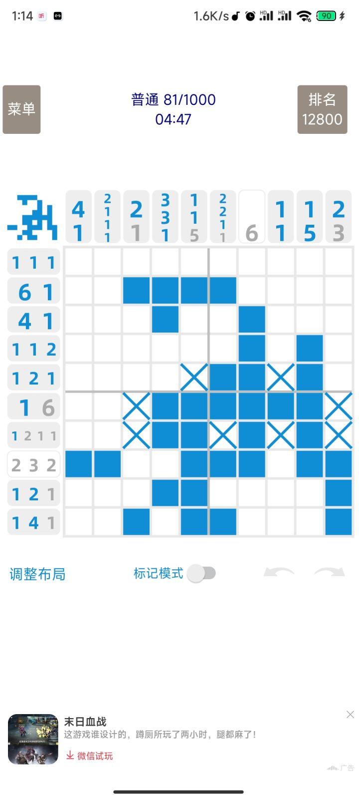 最近上线的数图玩法和成语数图挑战赛,难住了不少玩家俗话说:出现卡壳时,才真正是“解谜”游戏。首先最有趣的应该是研究出新技巧,总结出“新定式”的过程。然后我们再享受竞速的乐趣。下面我就抛砖引玉,先介绍几个基本技巧:首先,数图的解题过程,通常是一次观察一行或一列,逐渐锁定所有位置方格,因为通常行列交替观察,像织布一样,所以又叫“数织”。以下技巧都以观察一行为例:一、尽量的填充1.1 数字和方