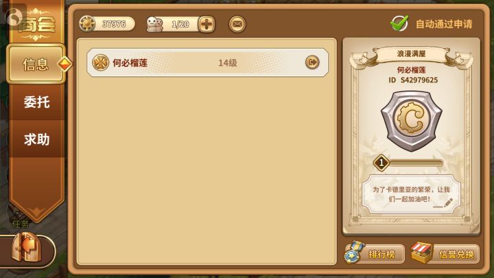 目前还有坑位,要抓紧啦~)一区咸鱼商会找人啦,排行20的咸鱼快乐营招新啦!没有要求!没有要求!你还在为怕被踢出商会而胆战心惊吗?快来S42962297和我一起快乐咸鱼吧!是 S42962297 噢~