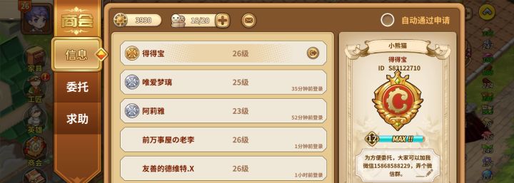 商会id:s83122710,只需每天委托就行,求助有人做,有群,一起玩不孤单。