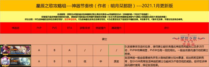 [星辰之歌攻略组][节奏榜]神器综合强度评测榜4.0—1.25