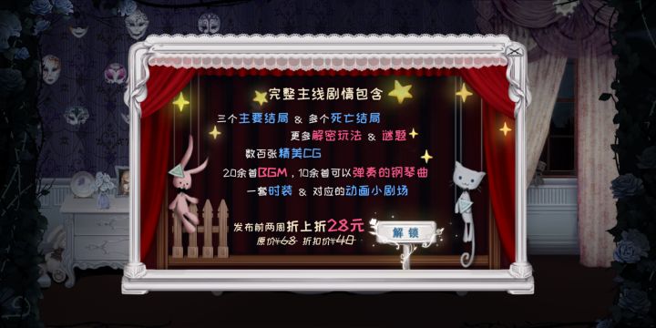 不管是恋爱也好乙女也好探索也好,游戏里有很多地方都有恐怖元素,而且个人觉得会造成一些心理阴影。这是从一些专门为了玩恋爱和解密游戏的朋友的角度出发。今天早上我的一个胆子很小的女同学还在说想试试这个游戏,说画风很漂亮。我现在不知道该怎么给她讲。希望官方重视一下,我打赌会有玩家因为没有明示恐怖主题而退款。
