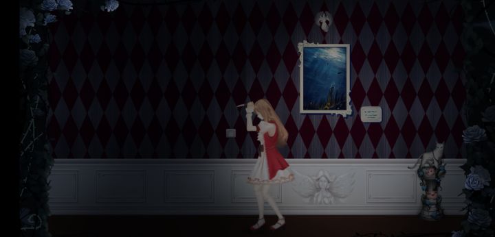 在过完水滴画之后的走廊看到这幅L画,拿起小刀划了一下,然后人物就一直保持划刀状态在这里原地不动轻微抖动,闭着眼睛左手在那里一直划。我真是够了,点了返回桌面再回来游戏重新加载了,然后读档画掉了,为什么手欠又上去划了一刀,这次连物品栏都不见了。我跟你说隔壁哪幅画划一下都没有问题,只有这一副会卡主,你这画有毒啊。