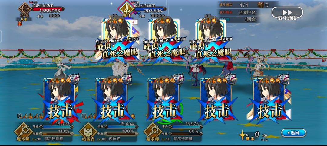 我方枪狂术三职阶敌方剑阶尼禄,弓阶罗宾汉,骑阶龙马,杀阶以藏场地上可以吃的三种buff,攻击力提升,毅力,满np终究是B叔一人抗下了所以,甚至让我感觉带姑姑和bba有点多余了,还不如给B叔整张毅力礼装(B叔羁绊还没满)