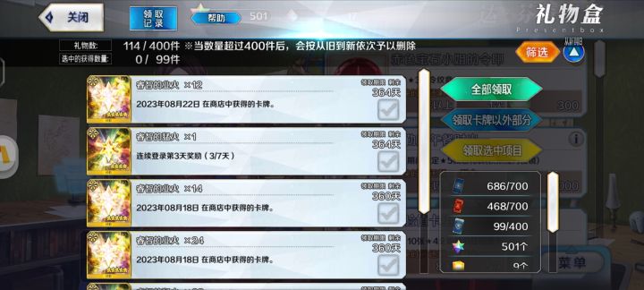 前几天我在商店了换了午餐礼装,今天想挂却发现仓库里没有,我以为还在礼物盒,结果礼物盒也没有,再去商店看了一下发现我已经买过了,可是我哪里都找不到,然后我现在再买了一张,可是不管礼物盒还是仓库都没有,这到底什么情况