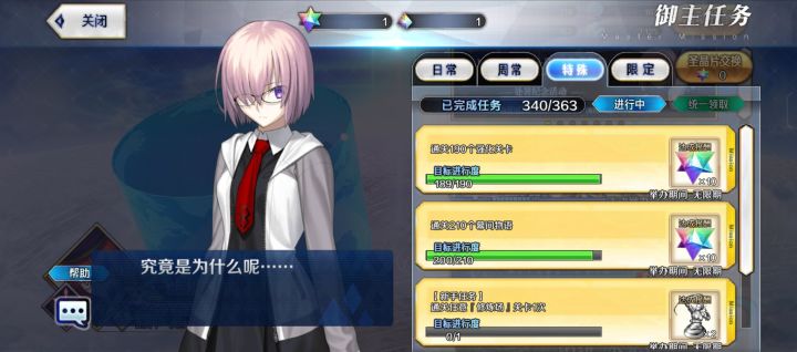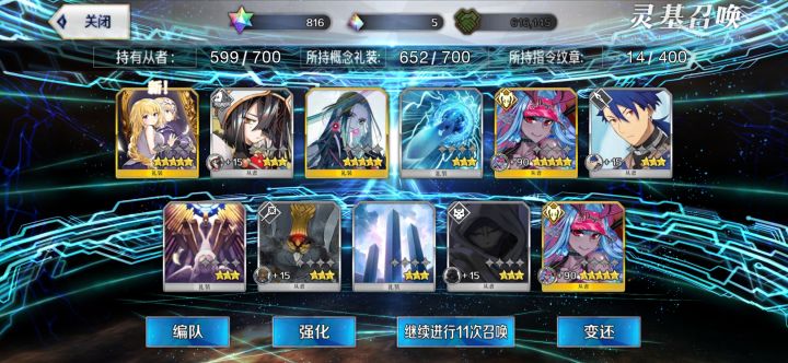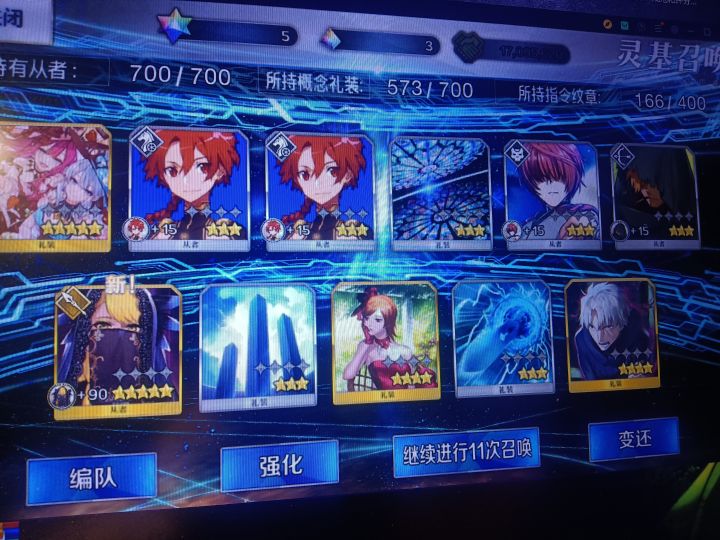老咸鱼回归,抽了145啥都没有,有点崩溃,原本300多石还是有点想法的,觉得就算歪最起码能出一个五星,现在一个五星都没有,更别提梅莉了。目前有2宝仇凛,2宝梅林,2宝C呆,1宝村正,1宝伊吹,2宝小芬奇2宝杀生院,1宝水杀生院,1宝伽摩,1宝弓凛,其它始皇卑弥呼天草四郎土方刑部姬紫式部都一宝,还有就是黑贞(3宝)小恩棉被小麻雀教授这些老从者了,该抽梅莉吗?后续又该抽什么?抽她只是想梅林梅莉两个整整