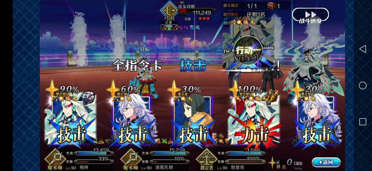 梅林加梅芙带对胜利的确信礼装(不放心带个20暴击星礼装),第一回合硬抗,第二回合放梅芙宝具,解决孔明,瞎几把打,带个枪界单体防翻车,感觉梅芙有点刮痧(没试过换人礼装,喜欢的可以试一下)