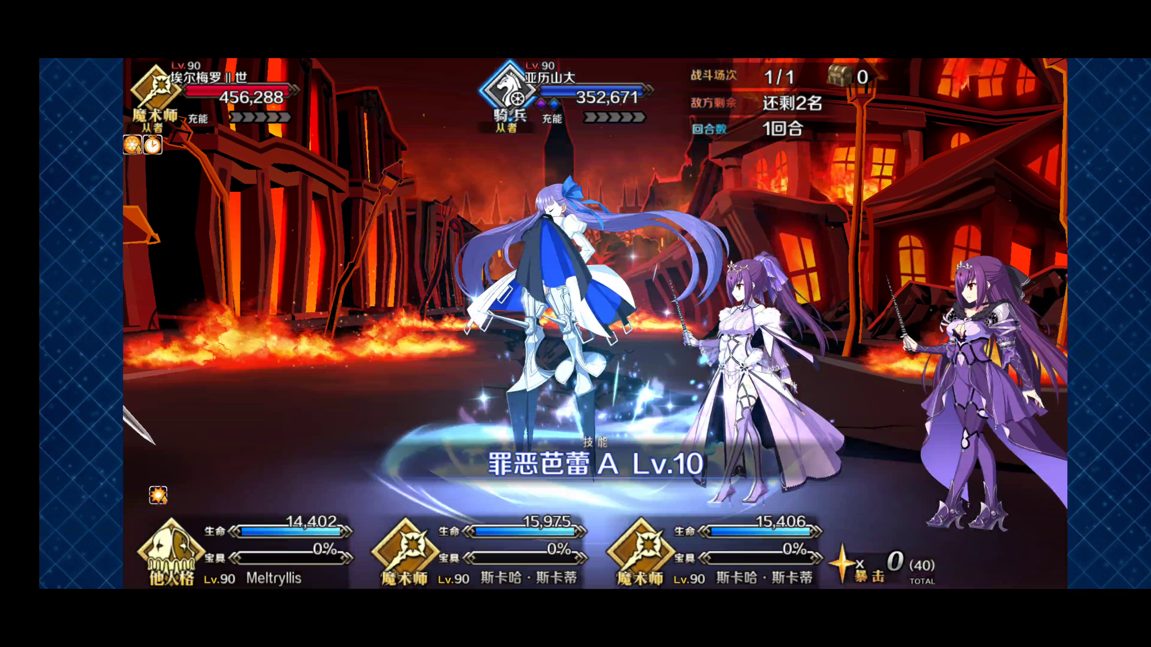 我本以为我打不过这高难,比较我拐也几乎没有,就想着,一管血就拿一个克制的角色来硬生生捶过去,打到倒数第二管血的时候我的龙马就被打出来然后被秒了,剩个斯卡哈打最后一管血,就用了一个令咒就刚好打过去了