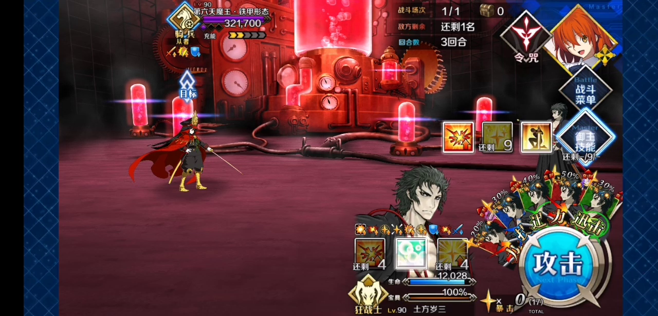 没狐狸没村姑,勉勉强强用太太磨过去了其实最容易翻车的点还是在于骑阶那管血条,一旦无敌跟不上就直接gg,所以无敌真的要留好大体思路就是叠防,太太上战续防止意外,之后就是快乐连发了因为有一波学妹被暴击到,所以不得不用了划令咒给太太充能120回合这种,以后再也不想弄出来了太折磨人了,中途还闪退了两次