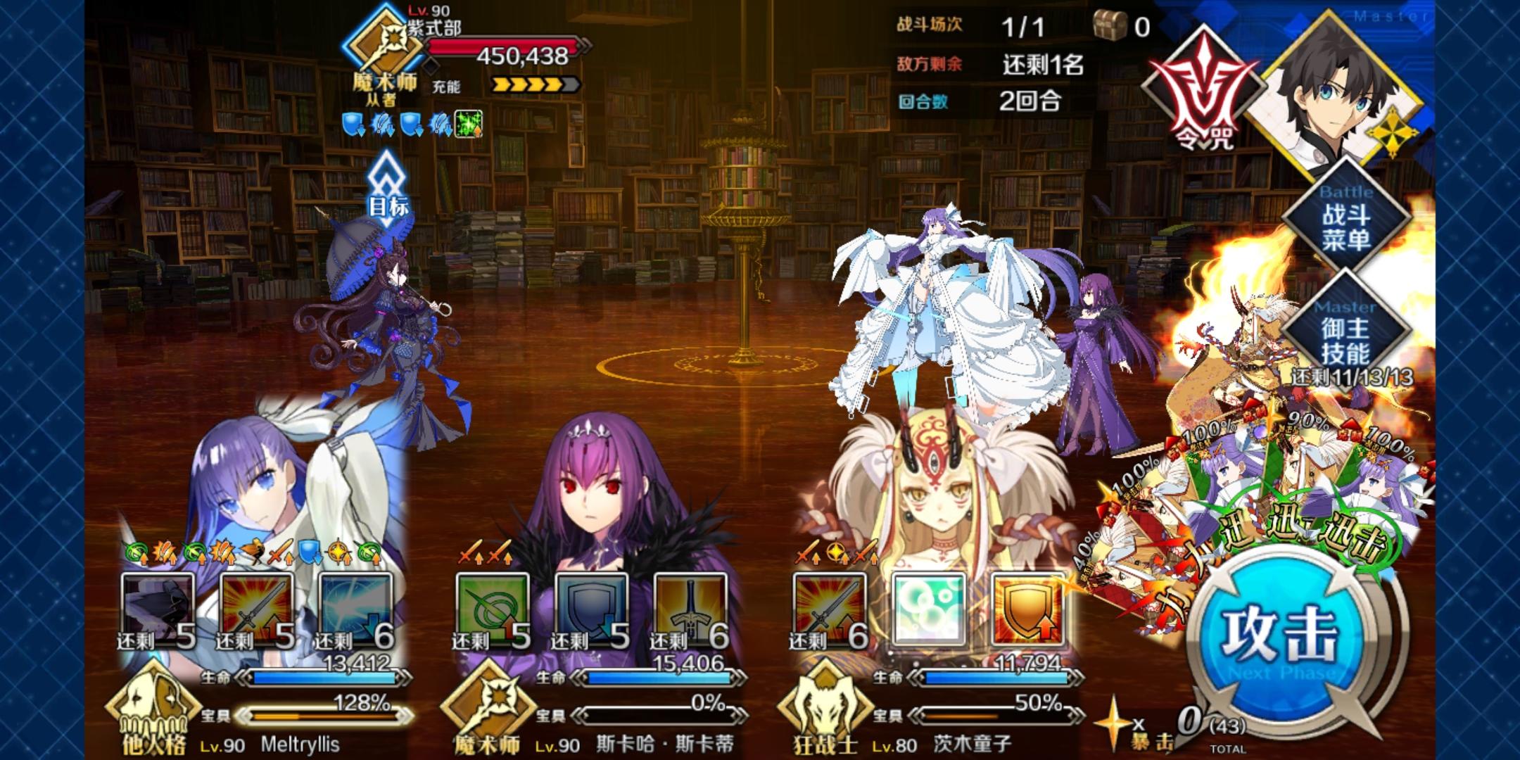 1t前排buff全用,开大英雄和玉藻喵宝具,用玉藻的原因是因为需要1t有两人下场和打星,所以随便一个不是骑阶的光炮都可以2t用掉换人服眩晕,防止紫式部招书(好像有点不需要,招书的机制不是很清楚)cba给牛若上buff,牛若开技能放宝具(不要放闪避),需要(最好)两蓝暴击保证np3t换上紫式部用宝具封印和弱化无效(防魅惑),牛若继续开宝具,这一回合对面紫式部会稳定把书再招出来4t牛若交闪避,紫