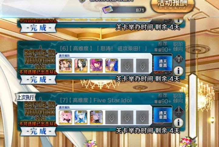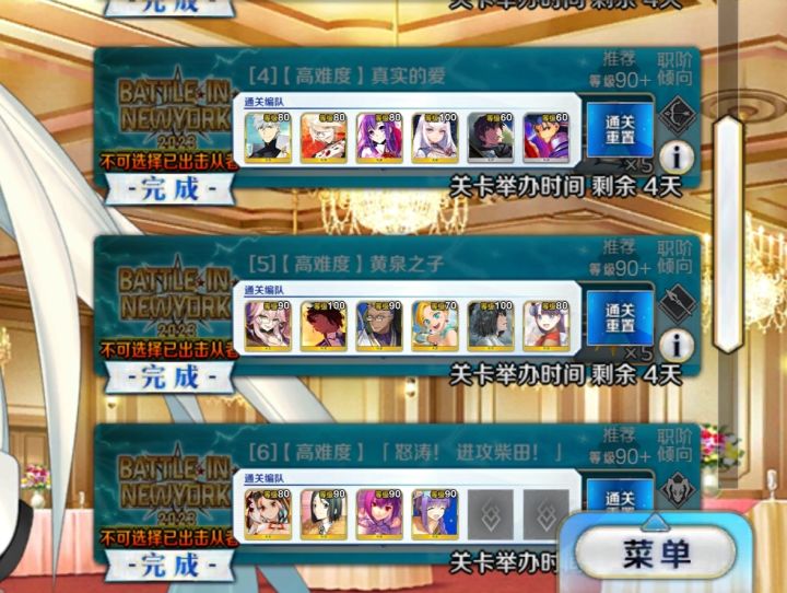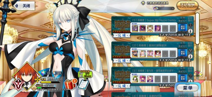 这游戏还是黑杯或者奥宝有一个,都有更是起飞。但因为本人没有奥伯龙没有杀狐狸,所以用黑杯的过法,限制单次不给助战还是挺要练度的,仔细看下这次还是很需要黑杯的第一关想着黑山羊到满留着爆破后面结果没用到,前面两面可以红弓砍+攒np后位置到异常队。第二关会叠攻击buff最后57w黑杯打手爆破。第三关打掉狂阶,用几个单体枪应该也能过。第四关黑杯大英雄+一个补伤害光炮秒三鹿。第五关需要光炮清小怪