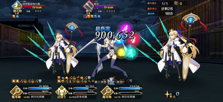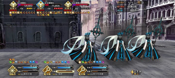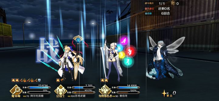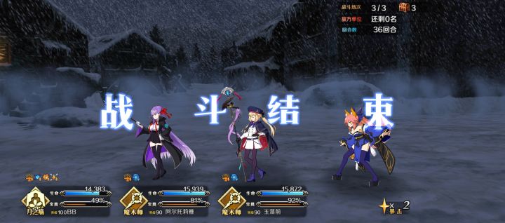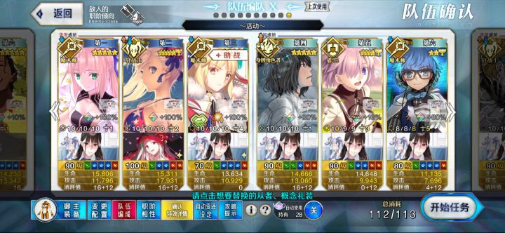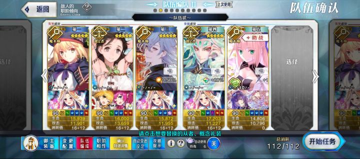 高难没研究配队,直接用刷材料的配置,换个礼装,用水贞+2c呆,三人即可,就是伤害低了点,13T才过,无令咒