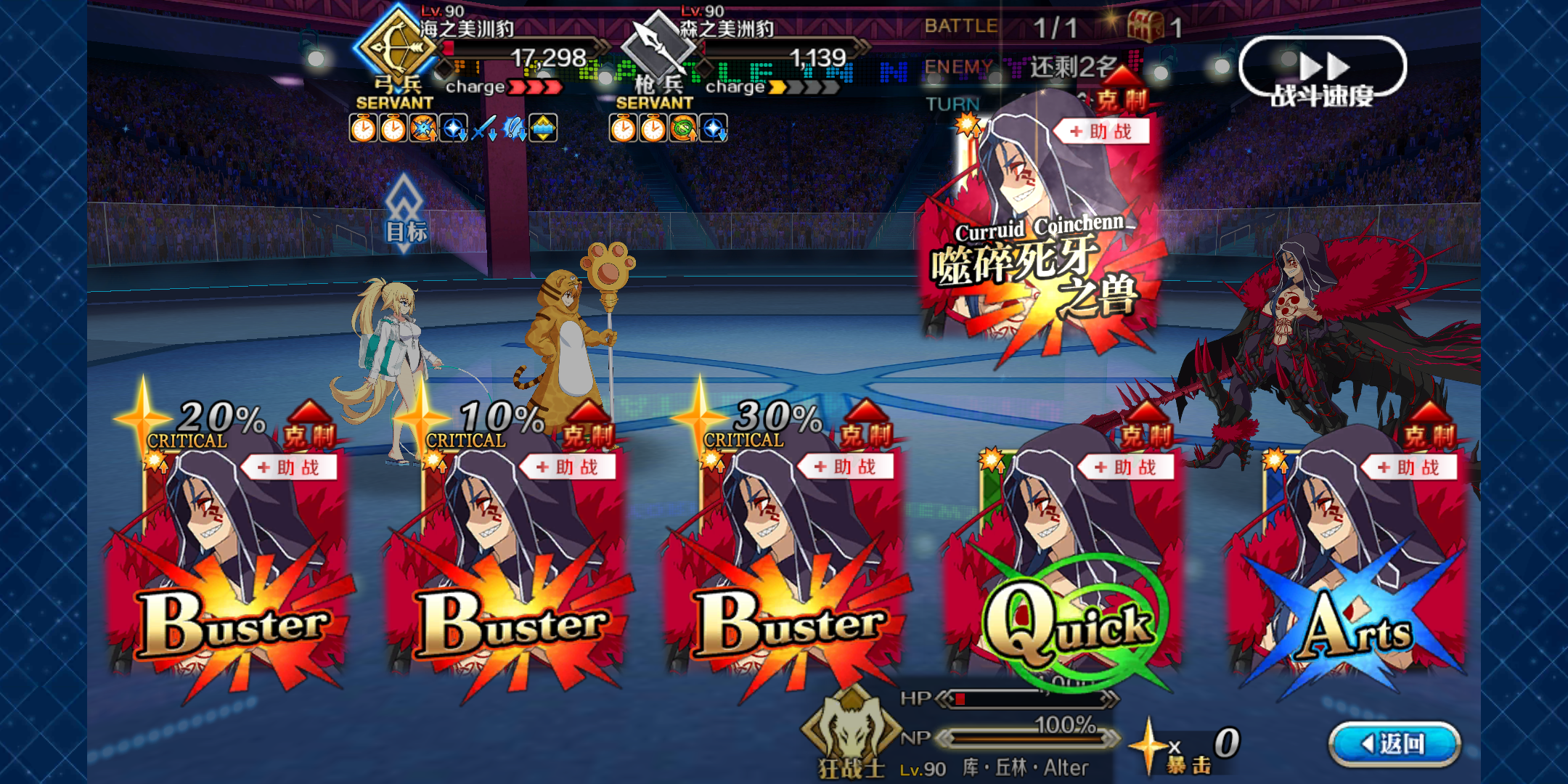 作为一个连令咒都不想用的御主,打了十几次终于过了(碎碎念:还是用了一划令咒,太精污了不继续刷了)不多说了一楼不金,二楼阵容