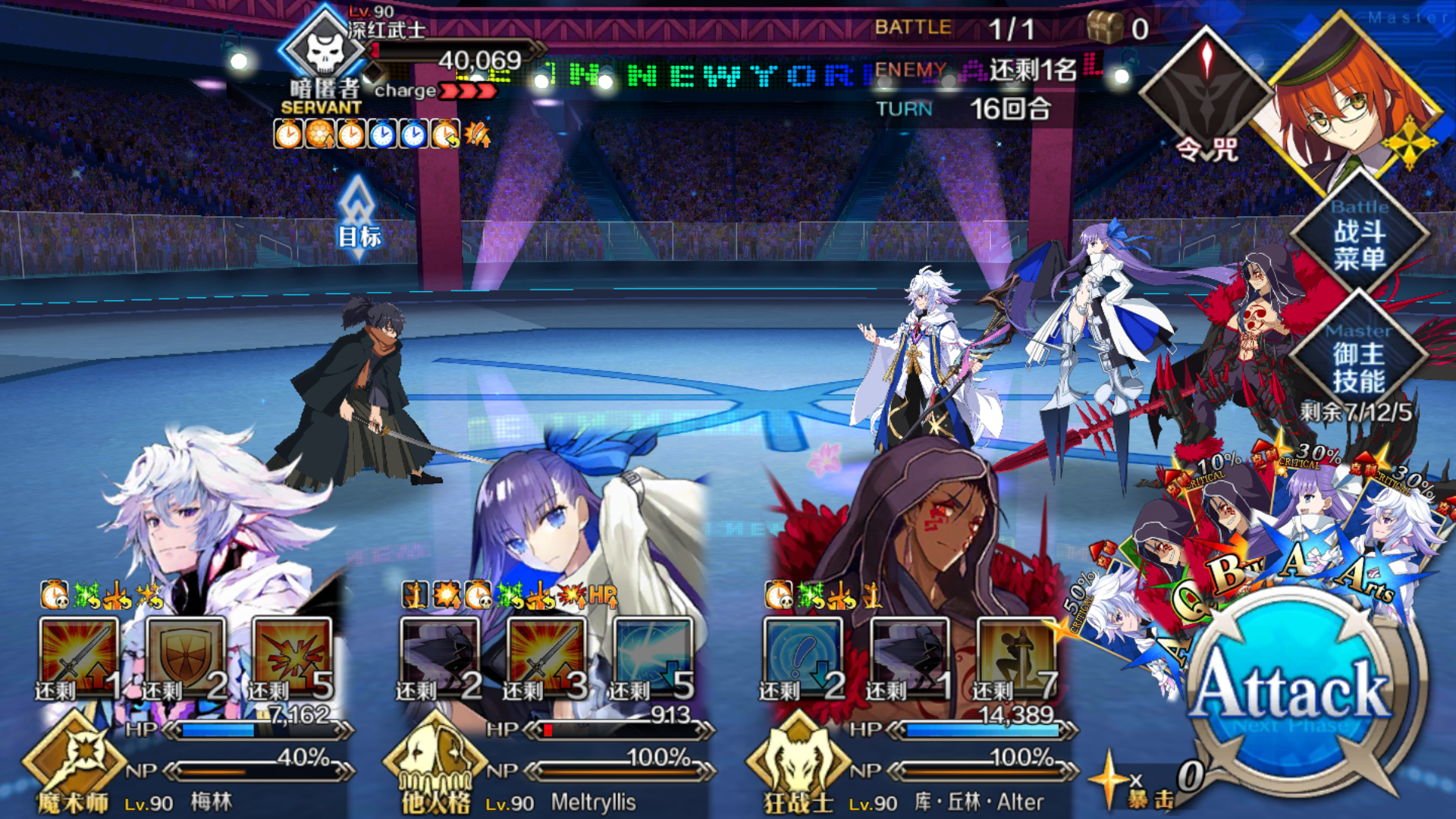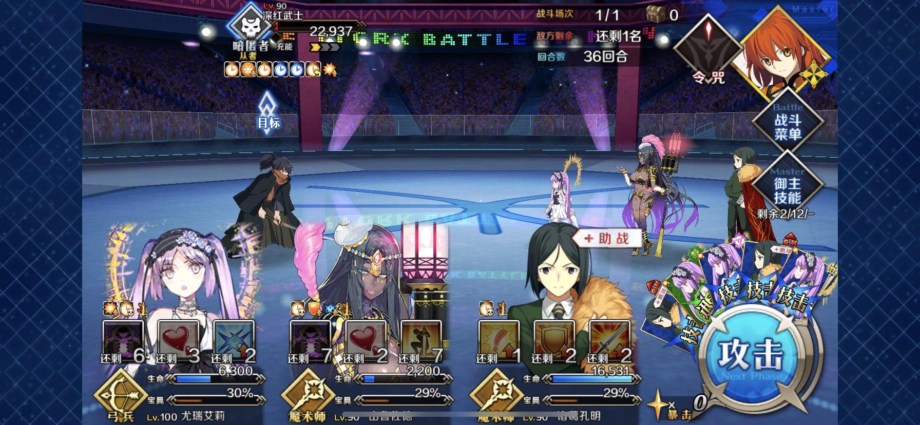 昨天打的时候托大,没上梅林,被崩了个七荤八素(np转不过弯)要不是被爆掉梅林和尼托,真想看看能磨多少个兵(阵亡於36回)本来想上自家总司的,但技能没练度……(实际上是看到神佬五宝)