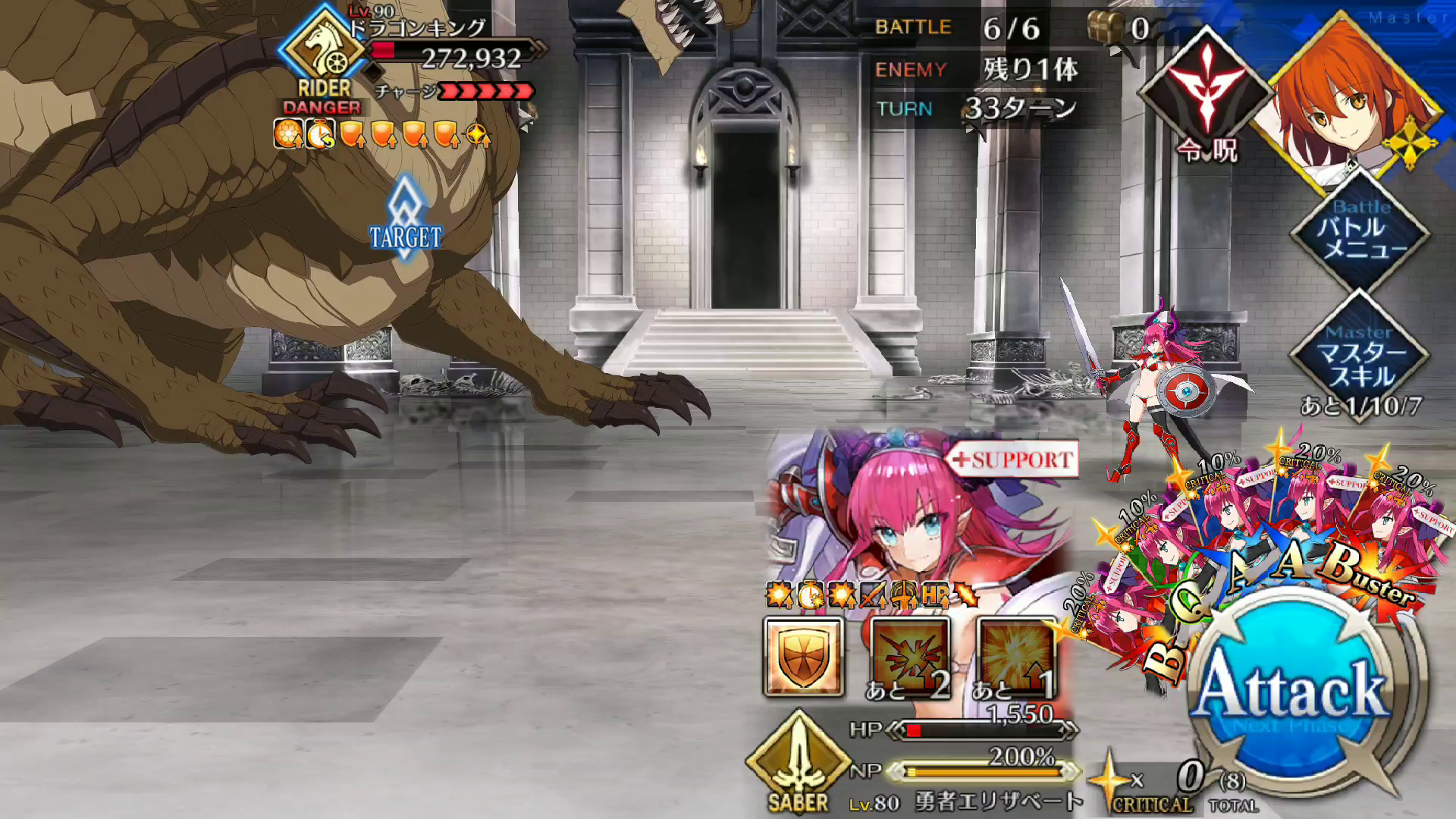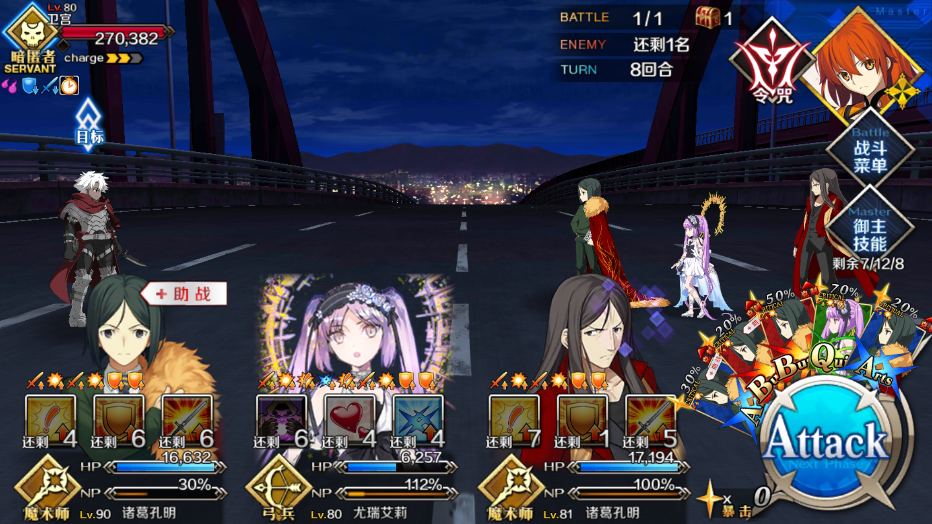 我用狂塔击破切嗣第一管血后立马用了令咒,赶紧把他爆破掉,后面三回合宝具连发加无敌贯通太恐怖。然后再慢慢和刷子van♂耍,剑刷我用二姐打的很爽,除了脸黑让刷子连续放了两次闪避,别的很轻松。算是我入坑以来除了明治维新复刻打的最舒服的一次高难了