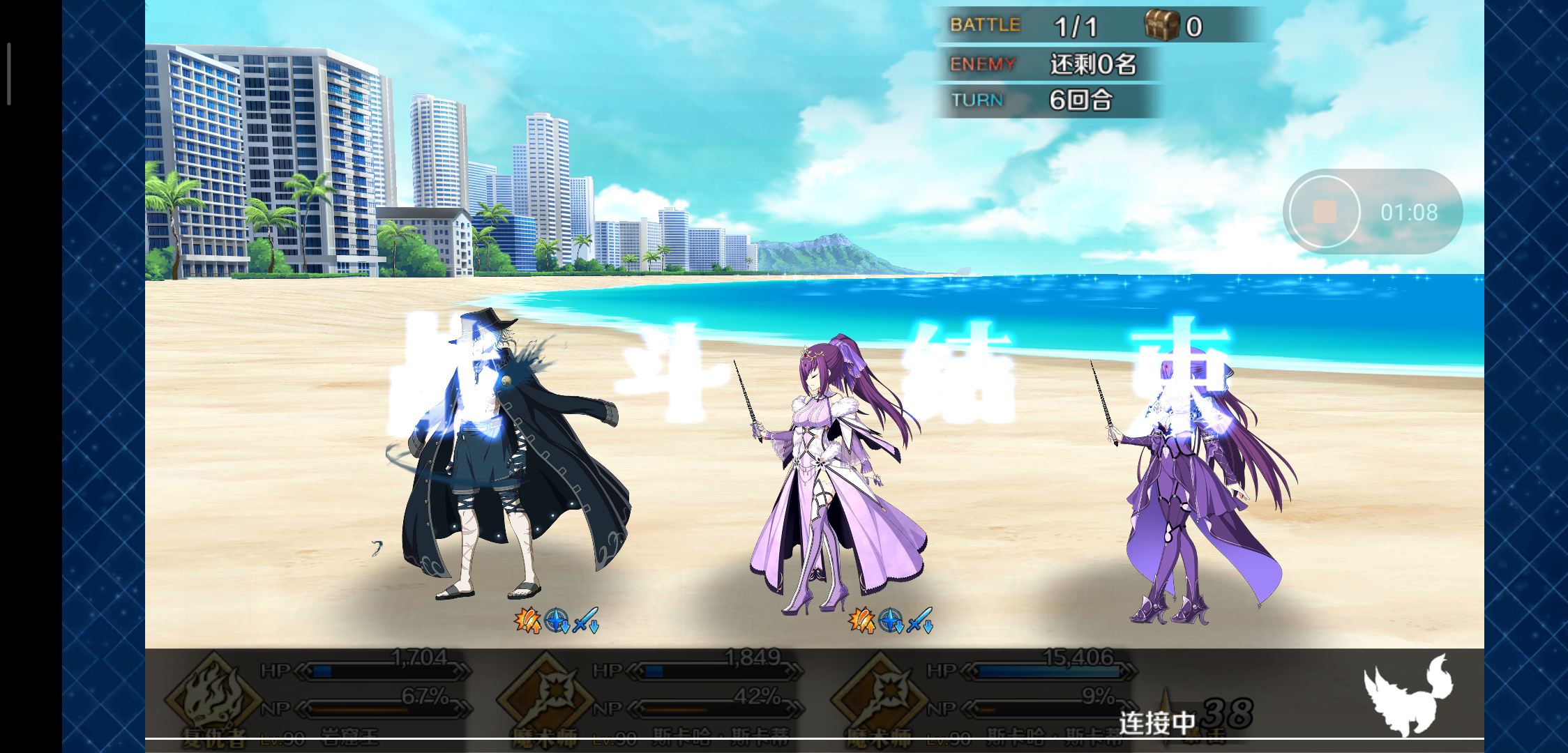 最后凛(伊什塔尔)把狂兰给秒了,只能学妹输出了,学妹。