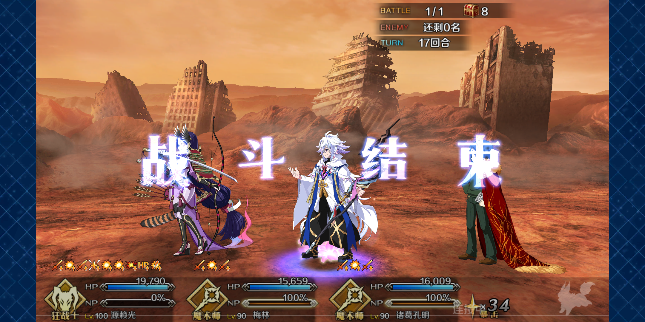 没用令咒,因为之前已经翻车了用马修、梅林、贞德磨死了四个人,因为后期对方NP条不等只能牺牲学妹了顺便嫖了好友的梅林划水王只为魔放和加NP