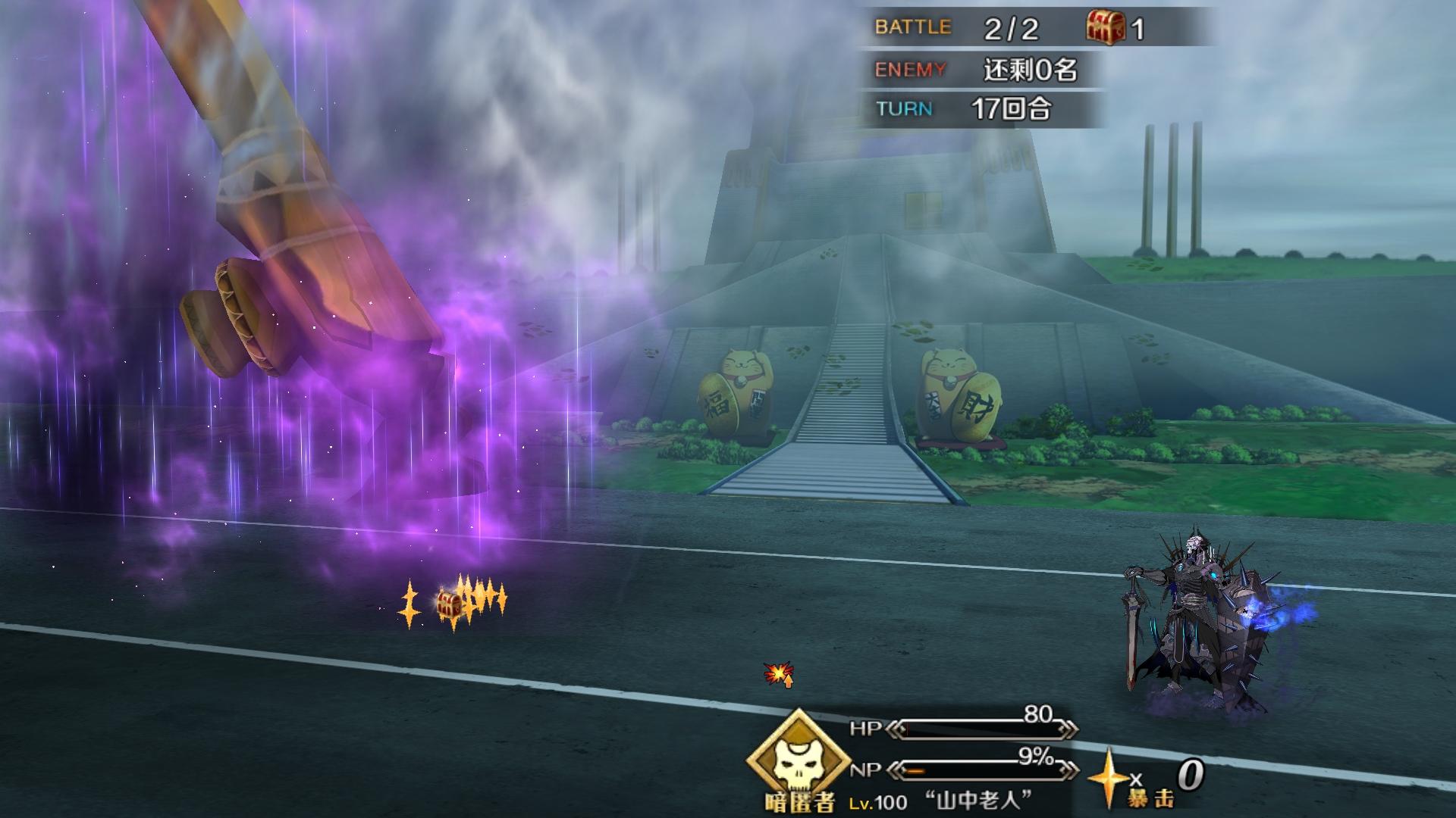 突发奇想用白贞单挑,在两发令咒回血的帮助下终于磨过了(虽然运气占比不小),感谢大佬百级310的白贞ヽ(○^㉨^)ノ♪