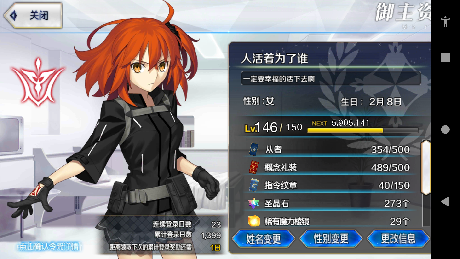 感谢四星自选。我永远喜欢卫宫妈妈!他就是我迦第一个满级从者了!肝掉17个金苹果,未来一个月不想碰种火本,接下来攒石头等黑A