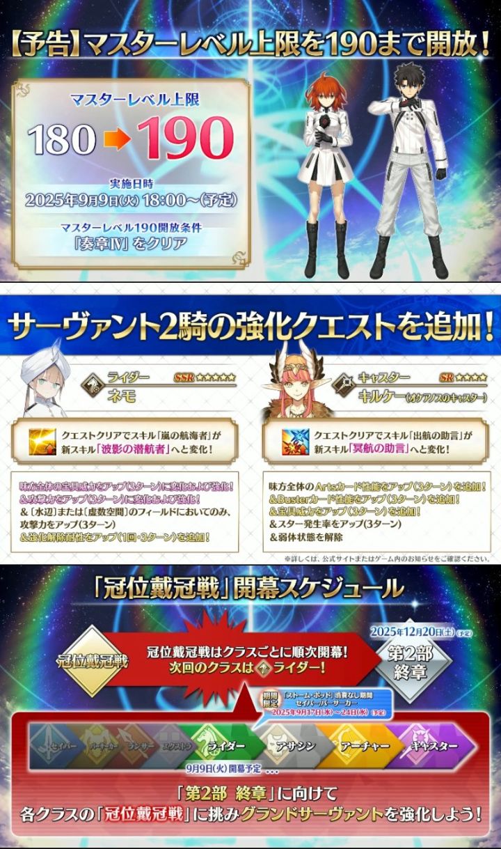 活动23号开 参加条件通关终章三个新从者 新的概念礼装和纹章 还有新的魔术礼装 目前只公开了新从者 技能和宝具啥的都还没公开