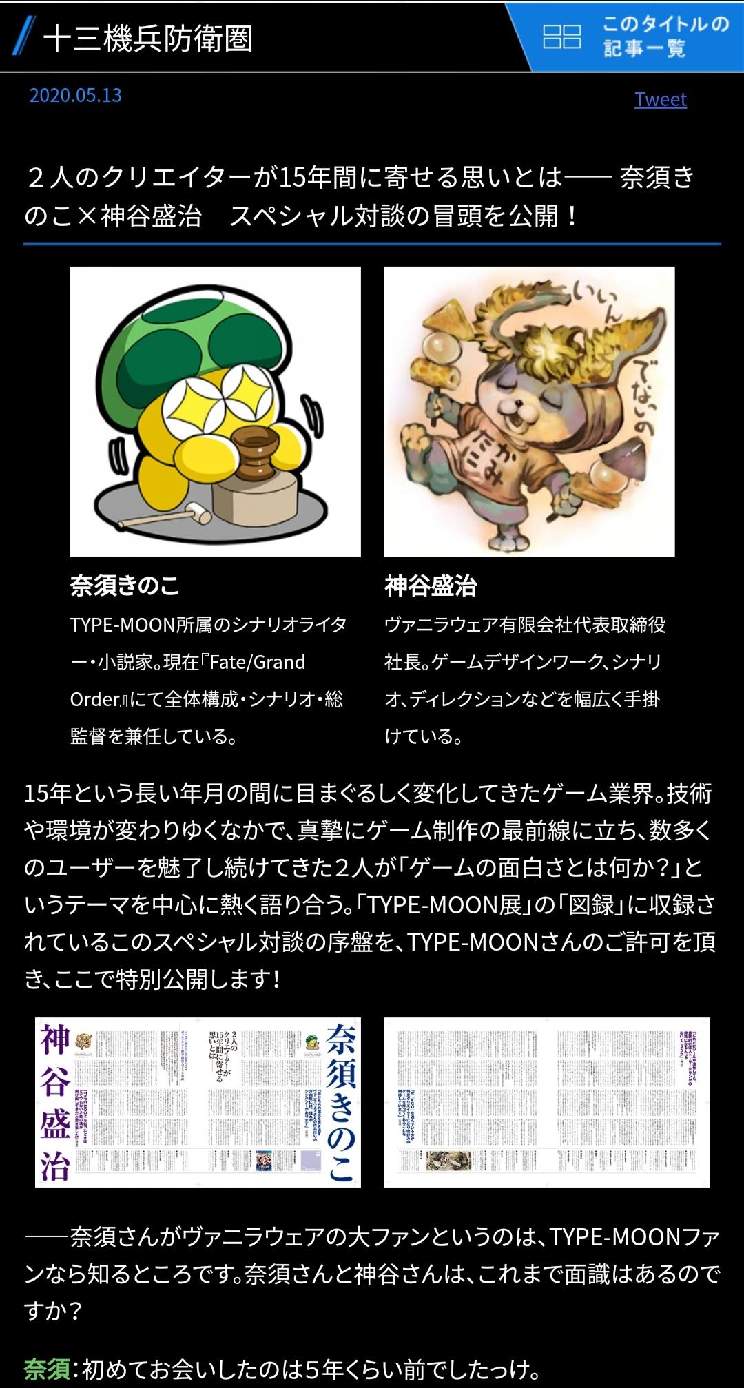 2人のクリエイターが15年間に寄せる思いとは―― 奈須きのこ×神谷盛治 スペシャル対談の冒頭を公開!访谈地址: