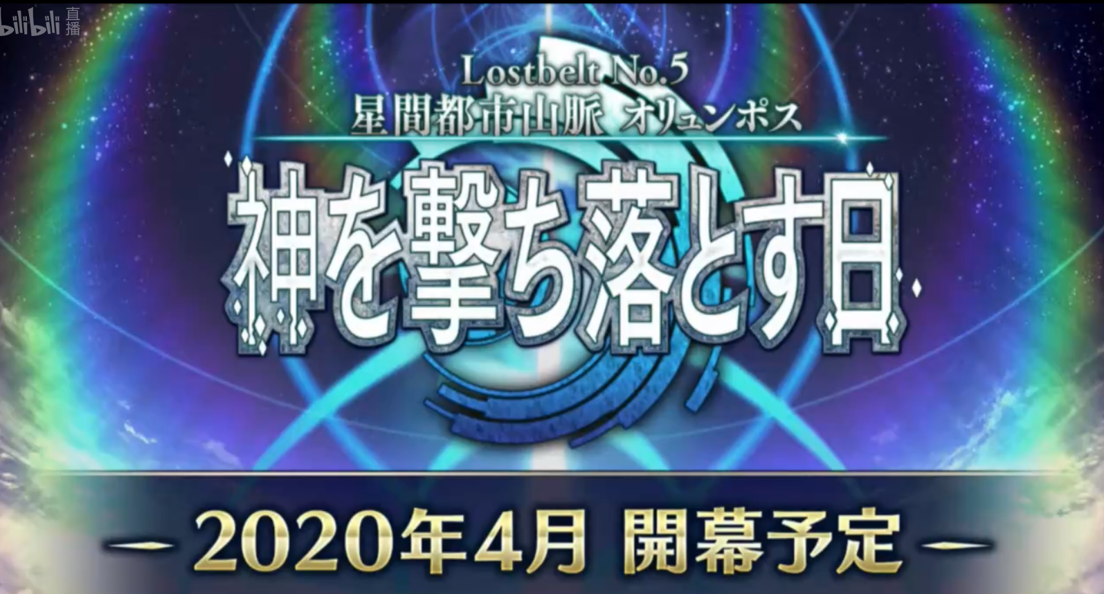 第2部 第5章「Lostbelt No.5星间都市山脉 奥林匹斯 击落神之日」开幕前夕纪念活动活动时间:4月2日17:00~4月13日2:59.主线关卡第2部 第5章(奥林匹斯)开幕前连续登录奖励:黄金果实×10.「Fate/Grand Order」特別节目「Fate/Grand Order 迦勒底放送局 Vol.13 第2部 第5章 奥林匹斯 配信前SP」活动时间:4月8日18:20(进