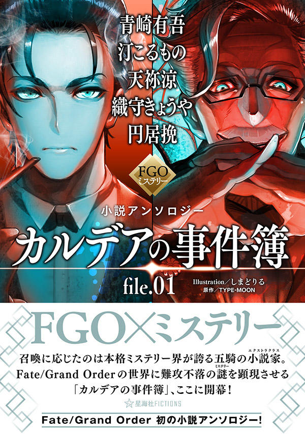 【新刊案内】星海社FICTIONS『FGOミステリー小説アンソロジー カルデアの事件簿 file.01』情報公開しました.青崎有吾、汀こるもの、天祢涼、織守きょうや、円居挽──本格ミステリー界から召喚されし五騎の小説家たちが、目眩く論理の剣戟をFGOの世界に炸裂させる!推理探秘小说集《迦勒底事件簿》2月14日开售,参加的作家和作品主题如下:1.「Malice or Romance」作者:圆居