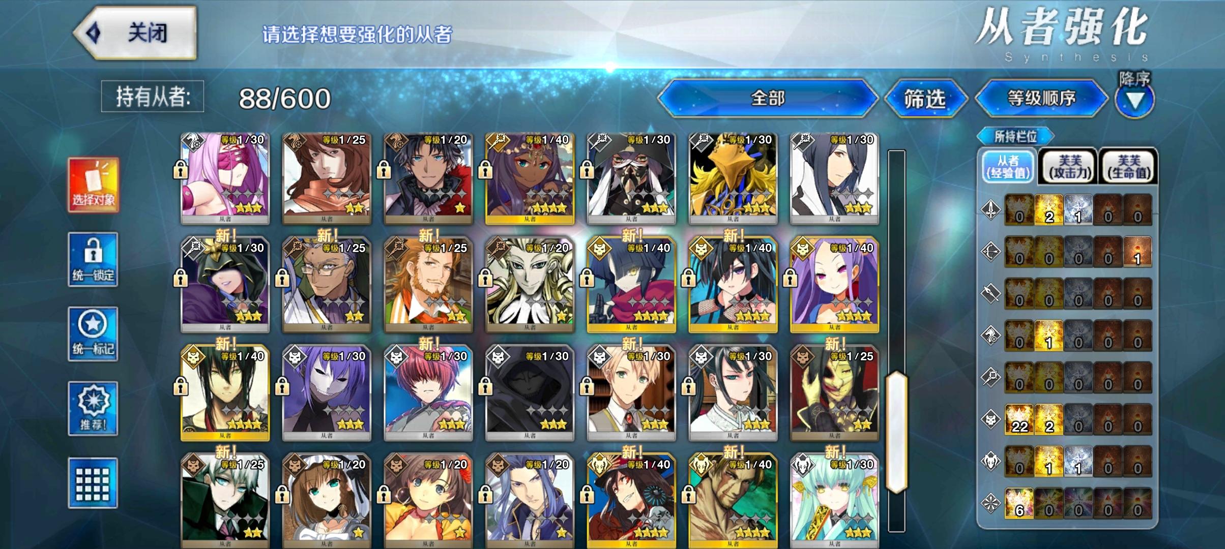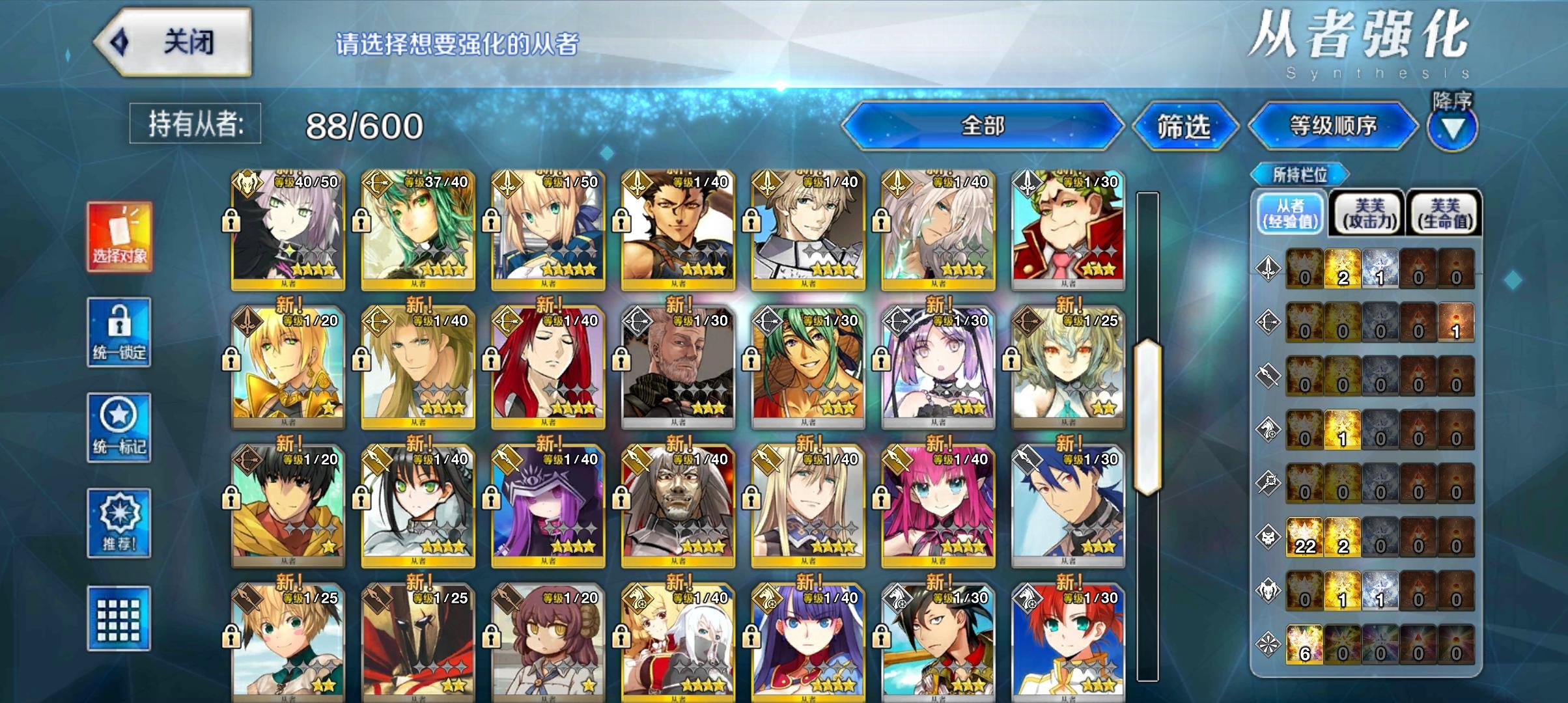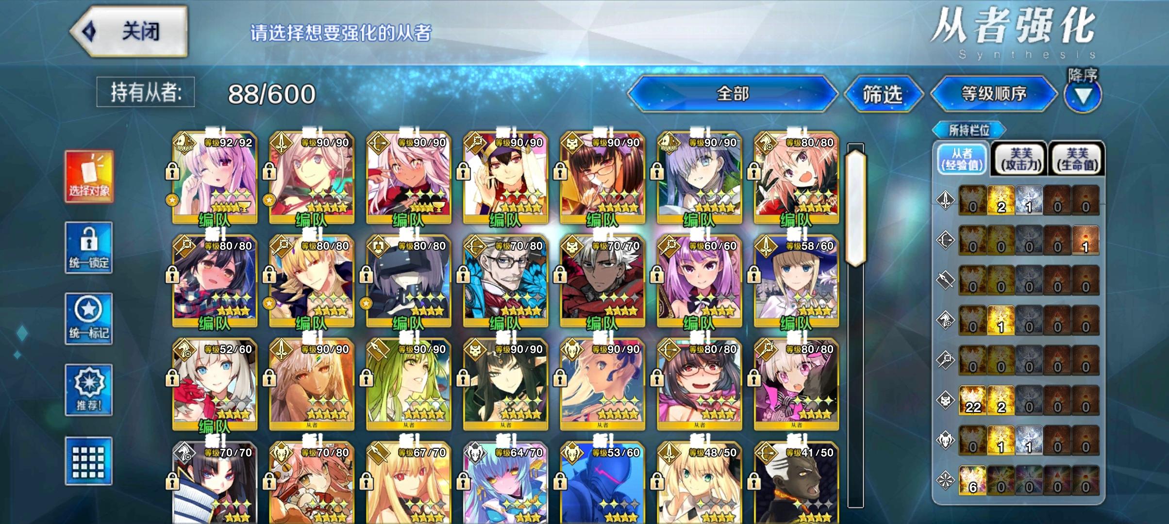 打到卡美洛了,感觉有压力,明明都拉到了90级,但是为什么感觉伤害很一般而且还很脆(另外,指令卡的升级材料怎么打?)有100级夹馍,满破魔伊,满破政哥,满破水BB,二临的杀狐,没练的水阿比盖尔,没练的杰克,没练的阿尔忒弥斯(俄里翁)(图过不了审)还有,这b游戏再临材料在哪里打都不给我标出来,那些满破的基本上全靠纯净棱镜