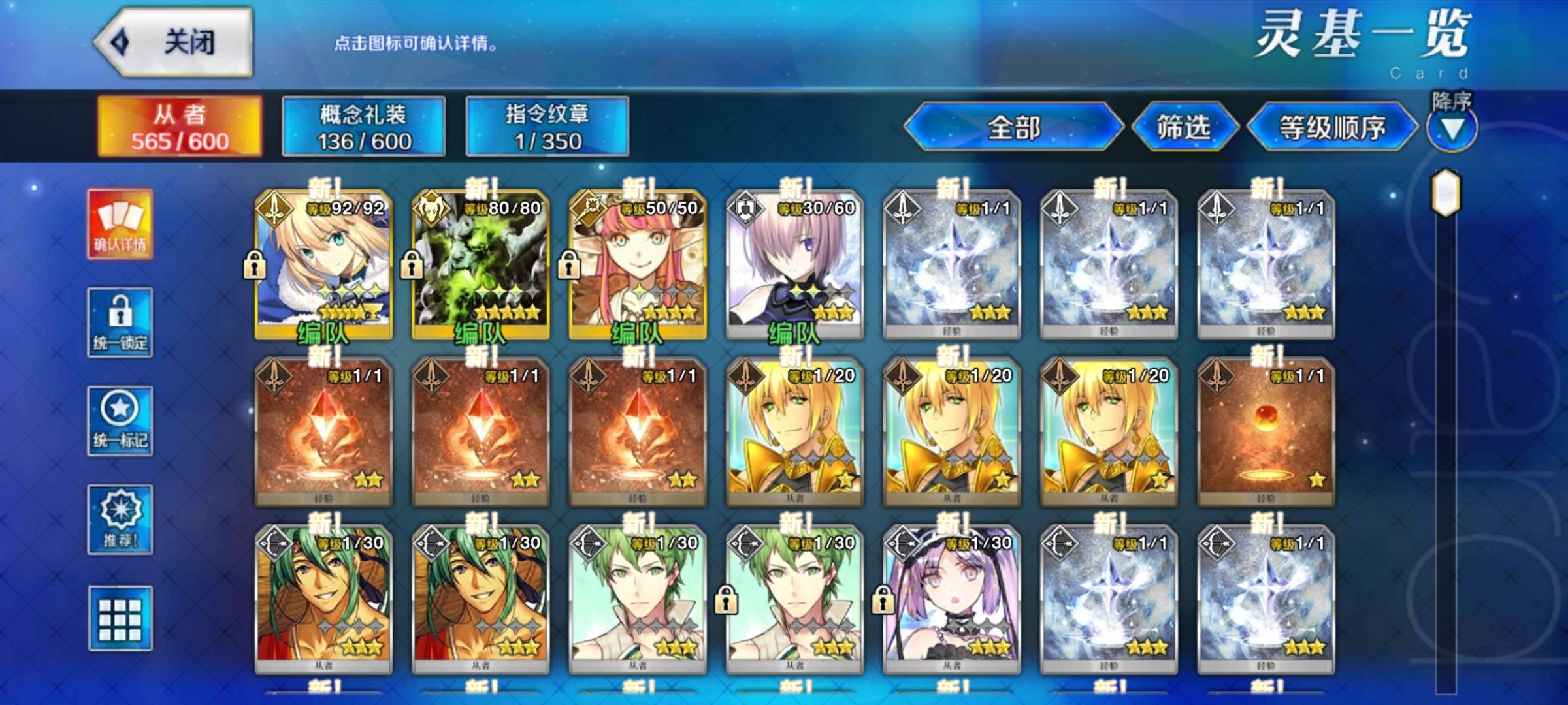 这是目前在用的,剧情到第六特异点,想知道用不用在抽个从者,石头有五百多
