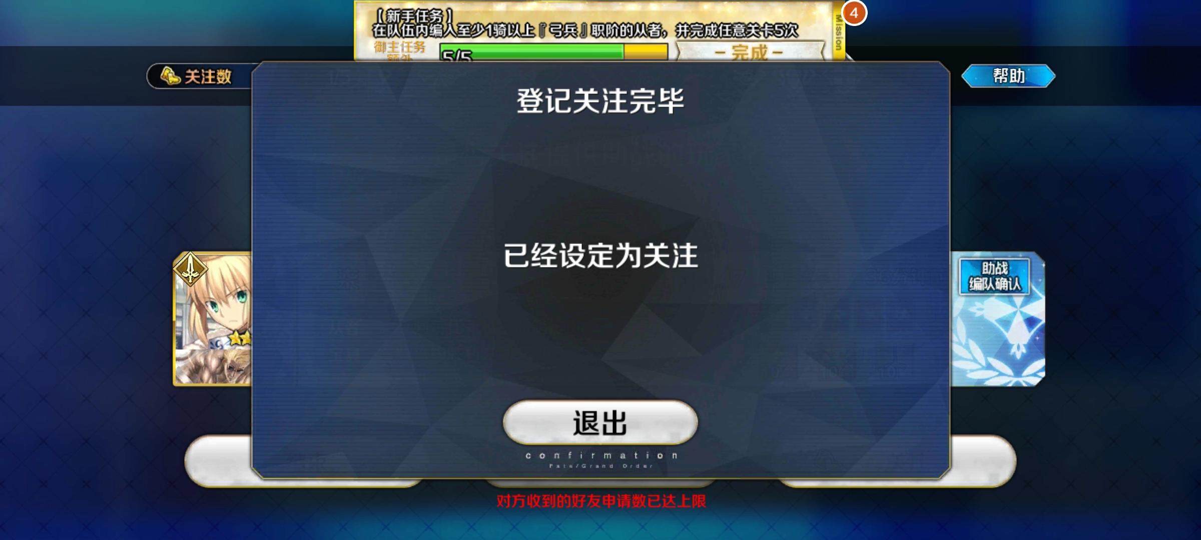 新玩家提问为啥我选了助战打完之后点个关注对方会跳出来个这玩意,然后点个退出直接退出游戏了?每关都是这样打起来好麻烦,如果不点关注点结束的话也会退出关卡😭