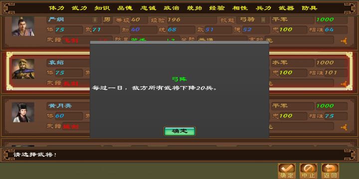 带上两弓阵,一后勤,一高武。不用带兵,先让弓阵清光敌兵再让高武去斩首。记得带上最好的武器防具