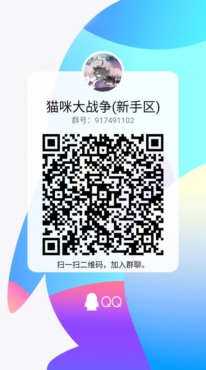 猫战新群,建群初期人还不多欢迎大家进来聊天。任何玩家都欢迎,当然聊别的游戏也是可以的群里的大家都很好遇到不懂的东西都可以问他们。虽然不能保证每个问题都会回答,但能保证他们知道的一定能回答。总而言之欢迎大家进群聊天啊。