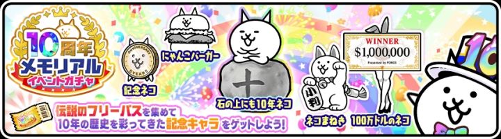 猫咪大战争(日服)将在11月15日开始十周年活动,在本次活动中,通过完成任务可以白嫖一张白金券,两张黑金券,十张金券以及五只周年限定猫,限定猫分别是:汉堡猫 招财猫 纪念币猫 百万美元猫 石上十年猫 这五只EX猫需通过签到或打关卡获得的活动券来抽取