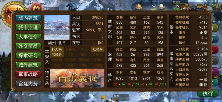 这……我玩了,有三四天了,这越到后面越奇葩,莫名其妙地方城池十几万兵力,没有运输队也没有其他的。能明白后期三四个大势力之间打的话会乏味,提高难度更有可玩性,但这太离谱了,动不动凭空十几万。还有这玩意永远不给我君主升官阶,不管是声望还是功勋都比敌人高,硬是不升,别人将领随便带30000兵,我只有君主才能带30000兵,怎么打? 抱着很大期望玩这款游戏,期间玩了又放放了又玩,我一直以为是没有掌握方法,仔细查攻略再来。但这永远提不上去的官阶实在是打不动了。