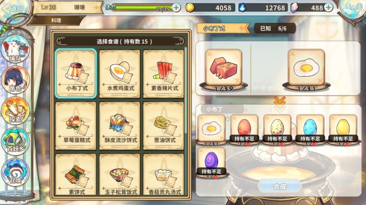 布丁(每个蛋都来一遍)水煮蛋(也是每个蛋都来一遍)素香辣片式(最后一个是黑暗料理)草莓蛋糕式(除了布丁和水煮蛋之外,同种食材不同颜色都是可以配的)葱油饼式素饼式(最后一个是黑暗料理)玉子松茸饭式(最后一个是黑暗料理)香菇贡丸汤式(老规矩)蜜汁肉脯式小鱼干式卤蛋式香煎里脊式(老规矩)虾滑牛肉羹式(老规矩)本来我每张图都打了名字上去的,可是发不出去,已经没有耐心打了,所以就这