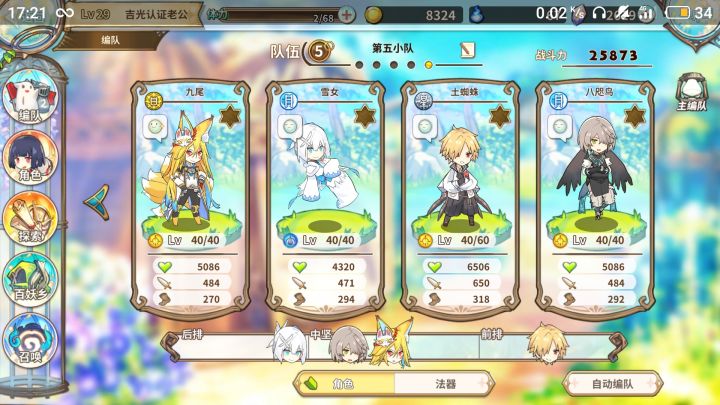 试了超级久,最后试出了两光系40%法器,土蜘蛛(进化)+奶+自闭鸟九尾(均未进化),看起来慌得一批实则稳如老狗
