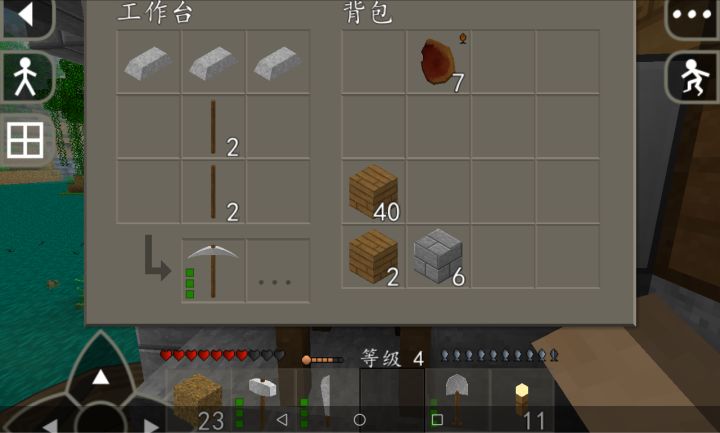 先看看自己家里有多少矿🙂,这次进矿用新工具钢镐额~才几个铜矿和几块煤而已啊😅那还是去对面那个矿洞看看吧!🙂我觉得过河还是别惹食人鱼好了(就是别打它,否则引来一大群直接将你的船咬爆了😂不行,如果是一只鱼的话就给它咬吧)不行你看,亲身体验,差点死了😭但对面那个矿洞是真的肥,四组铁和其它的一些矿,也是有得有失了😄(下期直接进入工业革命初期🙂铁炉在去之前已经早好了,如下图)
