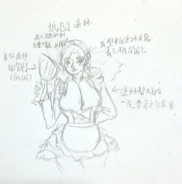 本人已根据放学四大画师之四的逆妹本人创作出了“逆妹”(算私设吧)形象如下(时间短低创见谅)形象解释如下:1.发型来自逆妹本人的头像(谁叫他从来不换)2.眉毛有点粗3.有点翘的鼻子4.sex的厚嘴唇5逆妹那么勤劳一定要穿女仆装啦(然而渣渣家不会画)6.象征画师的笔刷(bushi)咳咳,说回来可能有些人会问我为什么要搞这个……(各位放学别跑其他画手快来迫害逆妹啊!!)